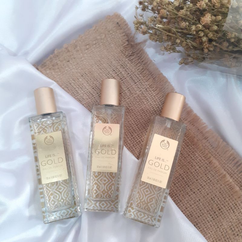 Aroma parfum life is gold the body shop. Middle notes are freesia and jasmine. Seri parfum the body shop scent of life gold addiction memiliki aroma bunga segar yang dominan. Life is gold de the body shop este un parfum oriental floral de dama life is gold a fost lansat in 2015.