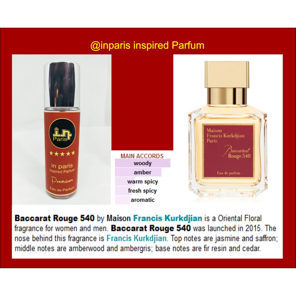 Beli baccarat rouge 540 online berkualitas dengan harga murah terbaru 2020 di tokopedia. Penggemar parfum dengan wangi floral pasti suka dengan produk yang satu ini. Bahkan penamaannya juga mengandung unsur parfum fenomenal itu.