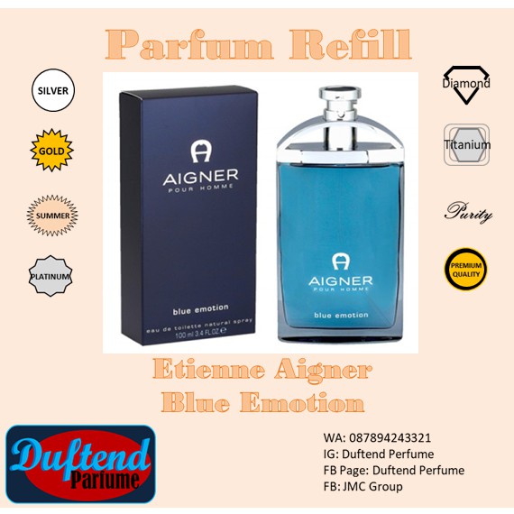Aroma surga menyediakan aigner blue emotion baik yang versi original maupun yang versi look a like. Parfum cowok aigner blue emotion 100ml. Parfum pria yang satu ini memang tidak ada matinya di kalangan para konsumen parfum refill parfum keluaran tahun 2002 hingga saat ini masih banyak peminatnya tak heran karena aroma segar yang ditawarkan oleh parfum ini memang benar benar di sukai oleh orang sekitar yang tercium aroma parfum yang satu ini aroma yang ditawarkan oleh dunhill desire blue adalah aroma segar lautan yang bercampur.