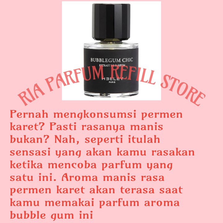 Parfum wanita aroma bubble gum. Aroma yang khas dan manis terbuat dari perpaduan. Tentunya semua orang pasti menggunakan parfum. Aromanya yang manis dan perpaduan bunga berkualitas sangat cocok dipakai di setiap kegiatan.
